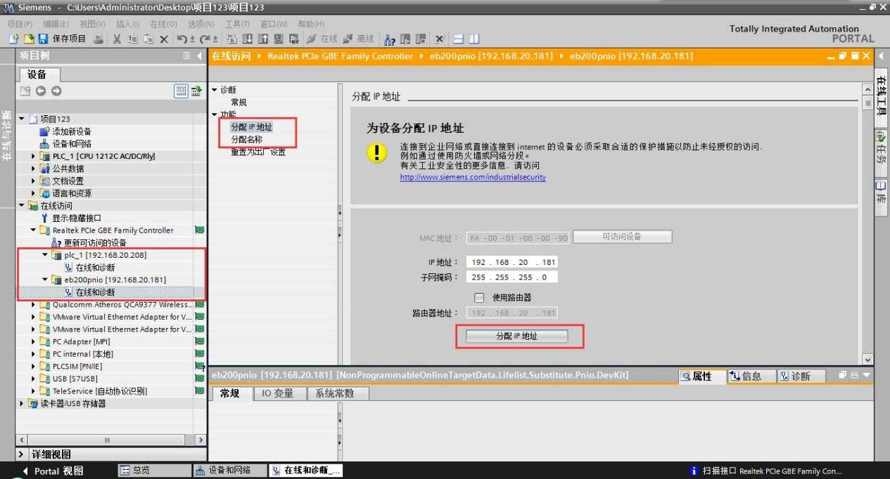 - 在線訪問----修改實際 PLC 和網(wǎng)關(guān)的 IP 地址和名稱(IP 地址要和實際的 PLC 地址在同一網(wǎng)段,名稱要和網(wǎng)關(guān)一致)