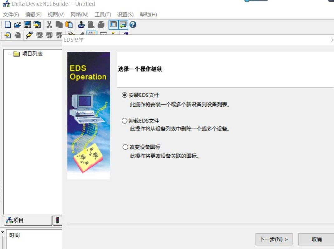 - 把 EDS 文件導(dǎo)入 DeviceNet 配置軟件 ,點擊菜單欄工具/EDS 操作