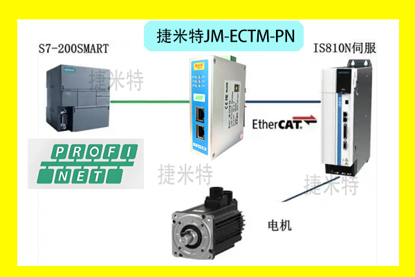 1. 使用PROFINET網(wǎng)線將S7-200SMART的PLC的PROFINET接口與EtherCAT轉(zhuǎn)PROFINET(捷米特JM-ECTM-PN)網(wǎng)關(guān)連接起來。