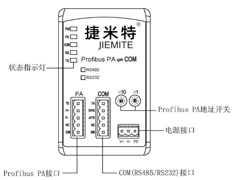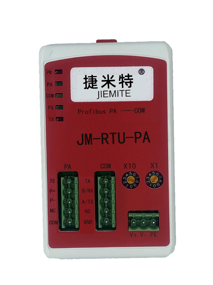 本產(chǎn)品是一種將Profibus PA和Modbus485 RTU專用通訊協(xié)議橋接的協(xié)議轉(zhuǎn)換設(shè)備。符合Modbus通訊協(xié)議的設(shè)備可通過本產(chǎn)品和Profibus PA總線上的主站設(shè)備進(jìn)行數(shù)據(jù)交換。需使用ProfibusPA鏈接器或DP/PA耦合器實(shí)現(xiàn)ProfibusDP和ProfibusPA的總線耦合。本產(chǎn)品在Profibus PA及Modbus總線上均工作在從站模式。RS485接口型號為JM-RTU-PA,RS232接口型號為JM-PA-232。