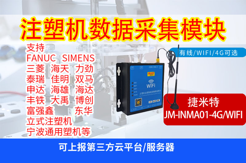 捷米特JM-INMA01-4G/WIFI注塑機數據采集網關是一款專用的注塑機數據采集網關,旨在解決當前注塑機設備數據采集痛點,注塑機品牌繁多,設備無接口,或者協議不統(tǒng)一,有線網絡施工難度大的問題,幫助客戶快捷迅速采集到注塑機數據。