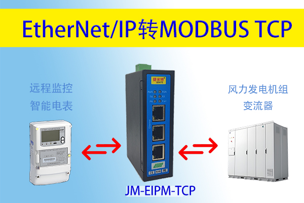 在風(fēng)力發(fā)電場的中控室安裝捷米特JM-EIPM-TCP網(wǎng)關(guān)模塊,連接到風(fēng)電場的局域網(wǎng)。確保風(fēng)力發(fā)電機組的控制系統(tǒng)、變流器等采用 MODBUS TCP 協(xié)議的設(shè)備以及基于 EtherNet/IP 協(xié)議的遠程監(jiān)控系統(tǒng)和數(shù)據(jù)分析系統(tǒng)均已正常運行且網(wǎng)絡(luò)連接正常。