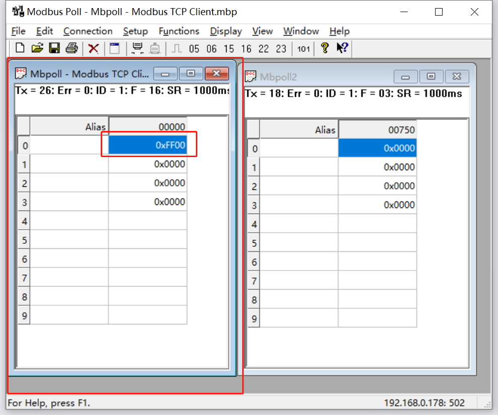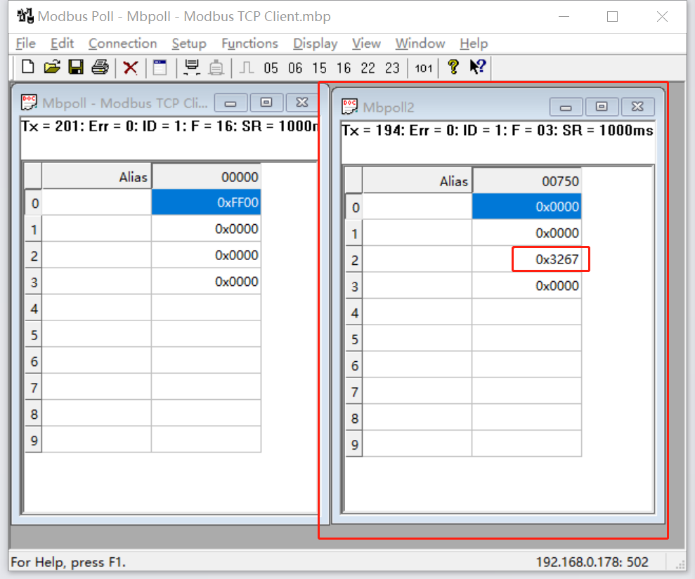 1) MODBUS TCP側(cè)Modbus Poll軟件在線觀察,所有命令界面無報錯信息顯示,Err指示數(shù)字不變化則通訊正常,如圖所示: