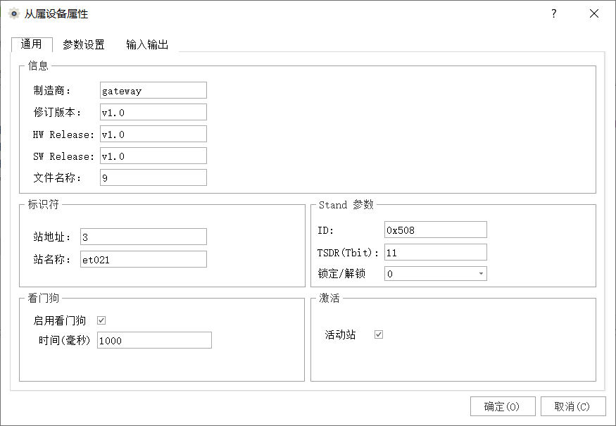 雙擊 Slave 圖標(biāo),彈出“從站設(shè)備屬性”對(duì)話框,在“通用”標(biāo)簽頁(yè),包含從站信息、標(biāo)識(shí)符、