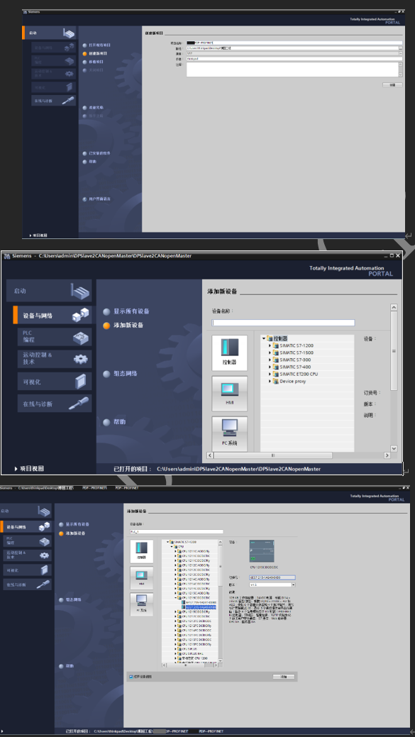 1. 打開(kāi)TIA Portal,選擇創(chuàng)建新項(xiàng)目,輸入項(xiàng)目名稱(chēng),選擇路徑等信息后,點(diǎn)擊創(chuàng)建,如下圖所示。