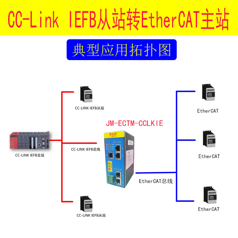 捷米特JM-ECTM-CCLKIE是一款EtherCAT主站功能的通訊網(wǎng)關(guān)。該產(chǎn)品主要功能是將EtherCAT網(wǎng)絡(luò)和CC-LINK IE FIELD BASIC網(wǎng)絡(luò)連接起來,進(jìn)行數(shù)據(jù)的互通。本網(wǎng)關(guān)連接到EtherCAT總線中作為主站使用,連接到CC-LINK IE FIELD BASIC總線中作為從站使用。