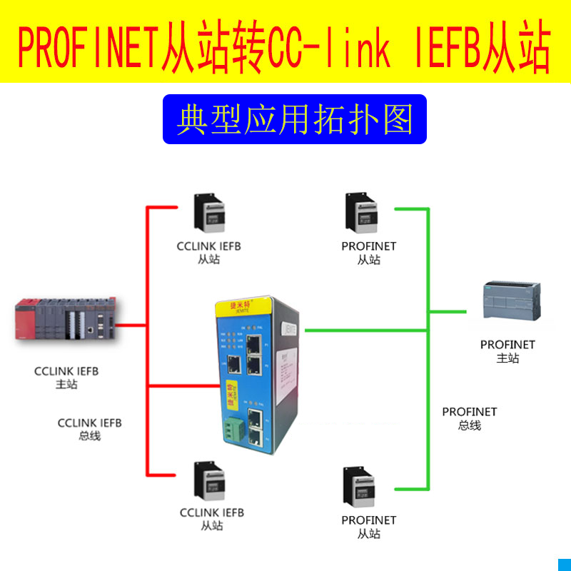 捷米特JM-PN-CCLKIE網(wǎng)關(guān)能夠?qū)崿F(xiàn)Profinet接口儀表、變頻器、綜保、軟啟動器等設(shè)備接入到CC-LINK IE FIELD BASIC網(wǎng)絡(luò)系統(tǒng)。網(wǎng)關(guān)在CC-LINK IE FIELD BASIC一側(cè)是CC-LINK IE 從站,在另一側(cè)支持Profinet從站。