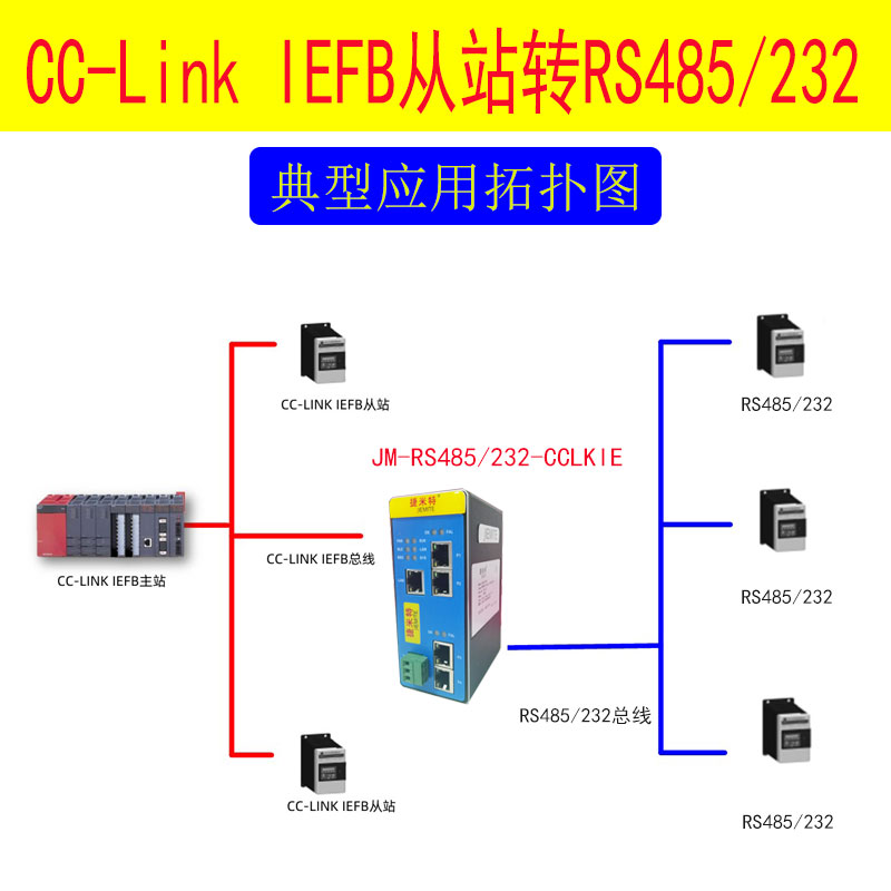 捷米特JM-RS485/232-CCLKIE是一款RS485/232主站功能的通訊網(wǎng)關(guān)。該產(chǎn)品主要功能是將RS485/232網(wǎng)絡(luò)和CC-LINK IE FIELD BASIC網(wǎng)絡(luò)連接起來,進(jìn)行數(shù)據(jù)的互通。本網(wǎng)關(guān)連接到RS485/232總線中作為主站使用,連接到CC-LINK IE FIELD BASIC總線中作為從站使用。