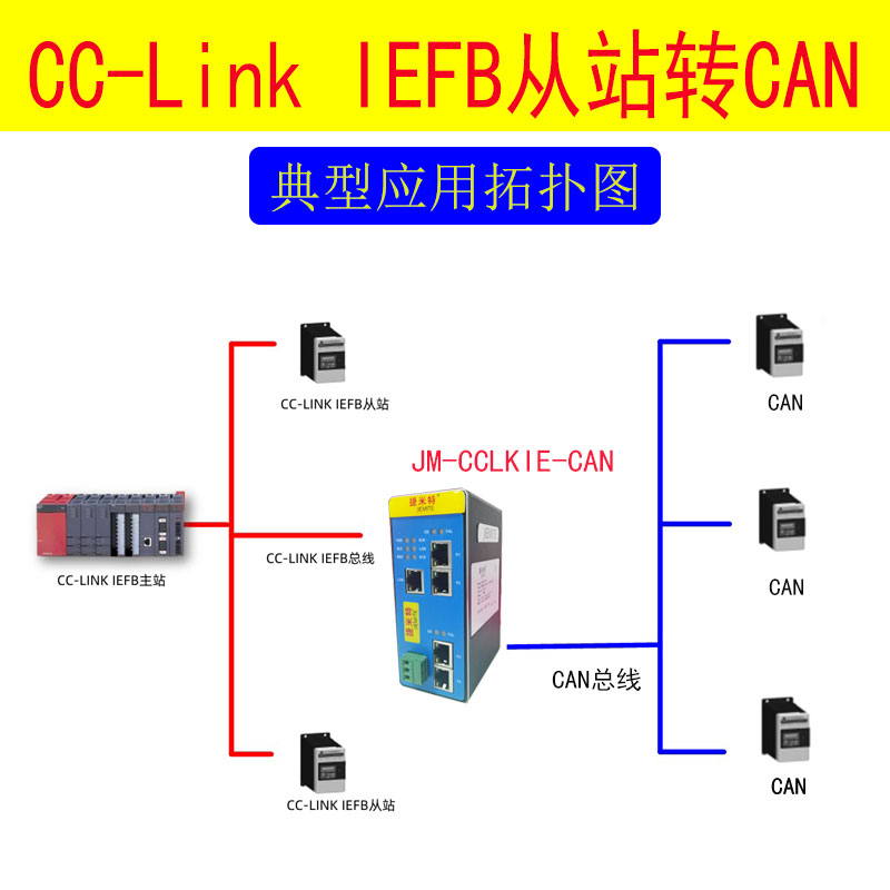捷米特JM-CCLKIE-CAN接到CC-LINK IE FIELD BASIC總線中作為從站使用,連接到CAN總線中根據(jù)節(jié)點號進(jìn)行讀寫。