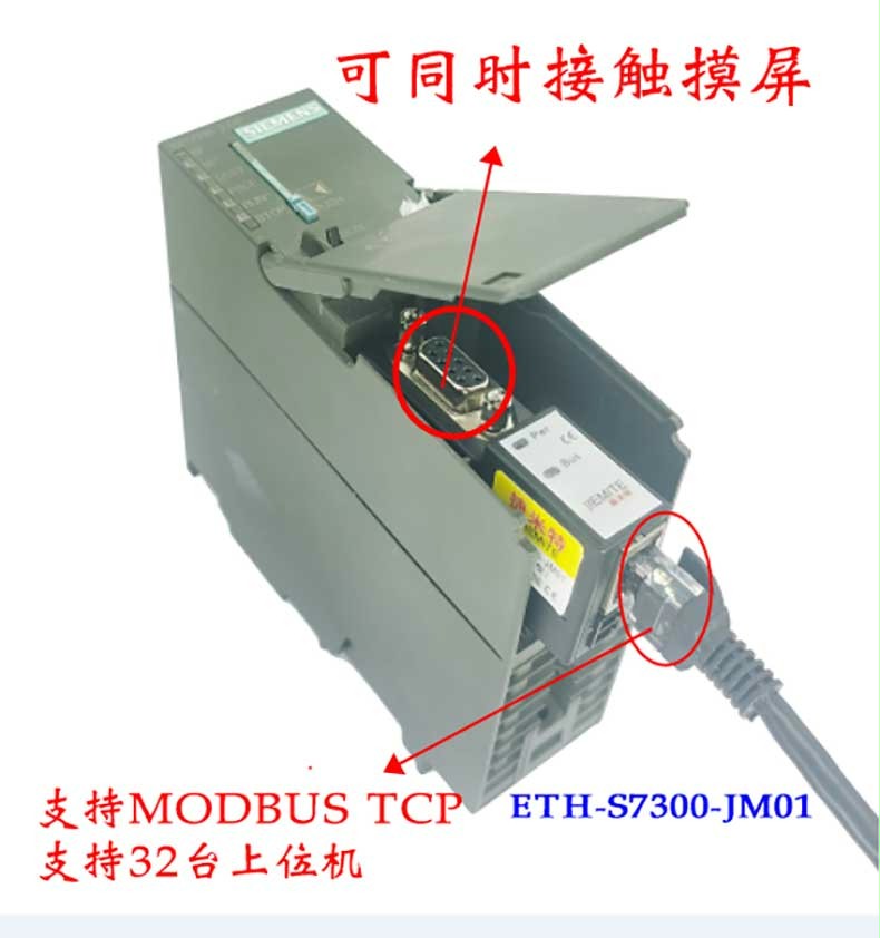 ETH-S7300不占用PLC編程口,即編程軟件/上位機(jī)軟件通過以太網(wǎng)對PLC數(shù)據(jù)監(jiān)控和采集的同時,觸摸屏可以通過擴(kuò)展RS485口與PLC進(jìn)行通訊。