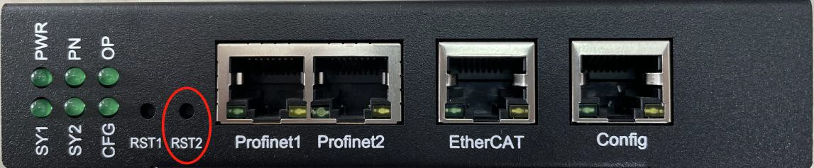 當 ECAT 配置錯誤導致網(wǎng)關(guān) ECAT 部分工作異?梢园醋≈蠼o網(wǎng)關(guān)重上電,網(wǎng)關(guān)會清除當前 ECAT 所有配置。用戶應該等到 SY2 閃爍再松開按鍵,網(wǎng)關(guān)自動重啟恢復正常。
