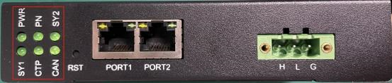 本網(wǎng)關(guān)六個(gè)指示燈如下圖所示: